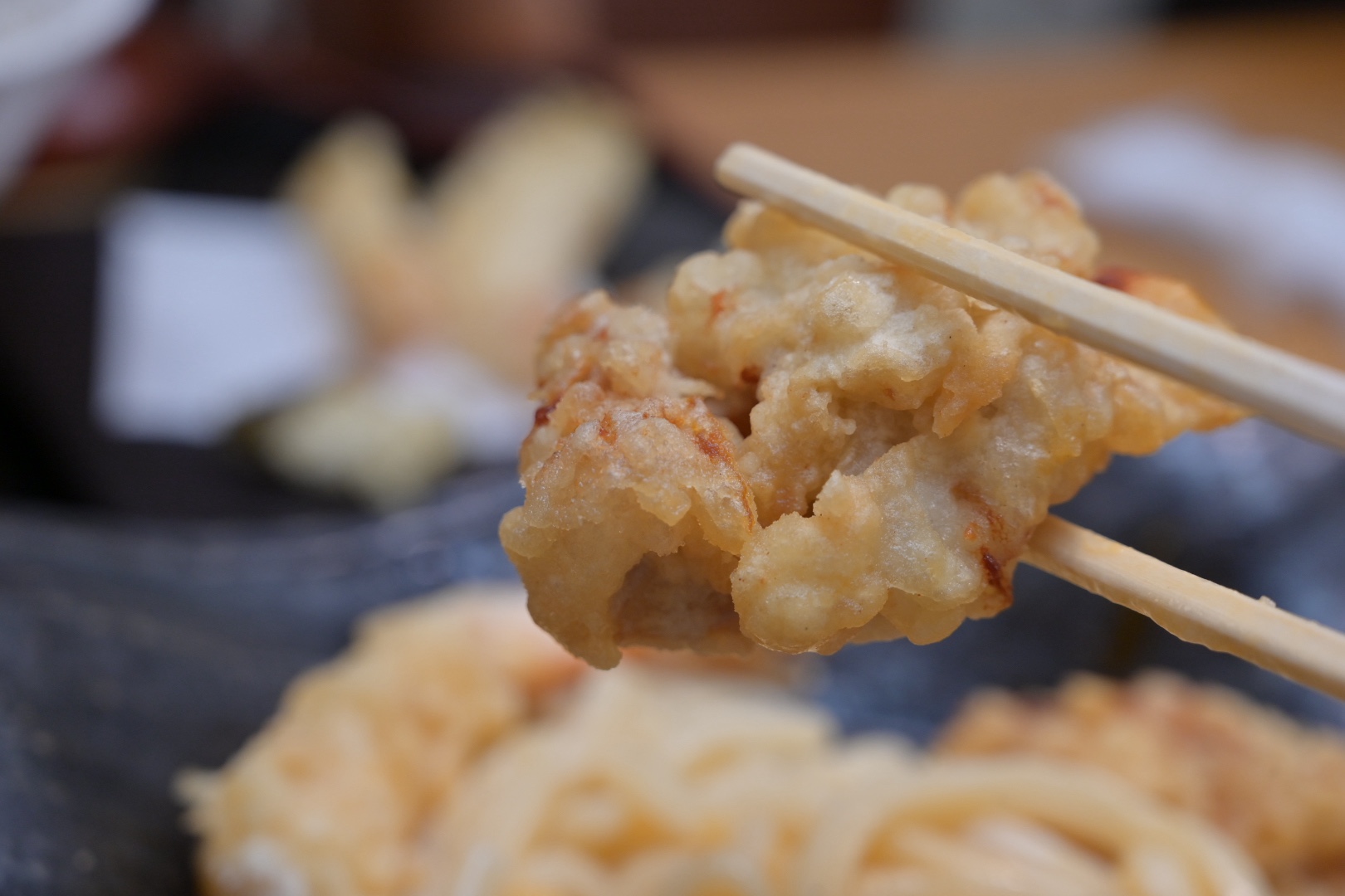海老天はサクサクした衣が歯触り良く、プリプリした食感も楽しめてこれまた美味。