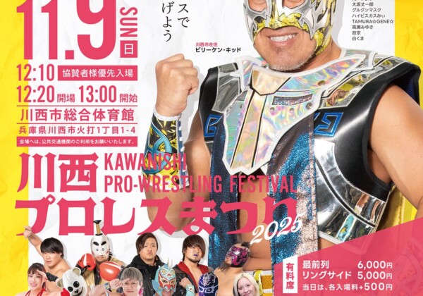どうも、かわマガ@けいたろうです! イベント情報です! 11/9(日)、川西市総合体育館で川西プロレスまつり2025が開催される...