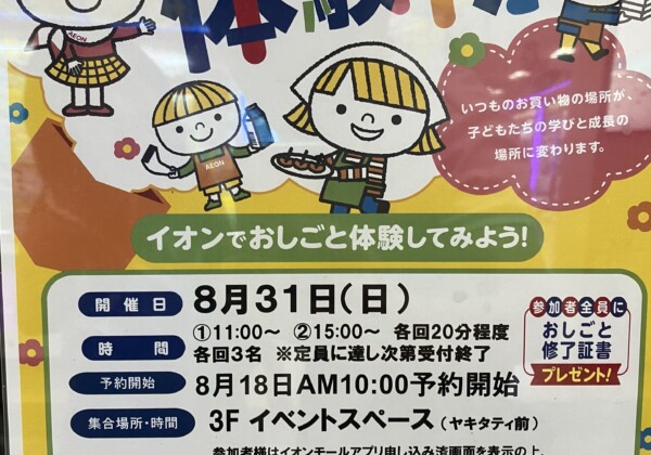 どうも、かわマガ@けいたろうです! イベント情報です! 8/31(日)、イオンモール猪名川で、すくすくおしごと体験博が開催される...
