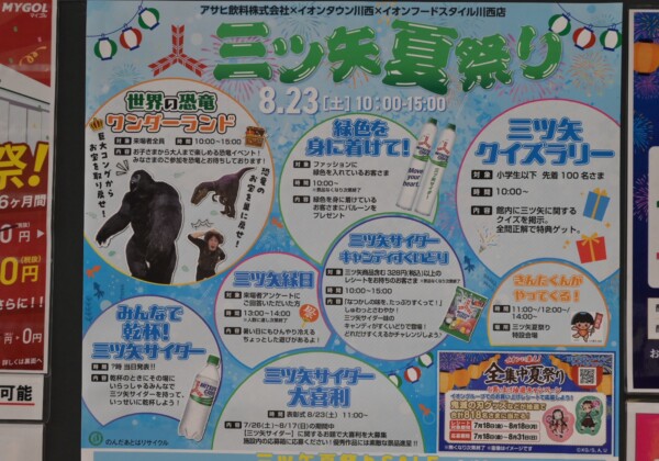 どうも、かわマガ@けいたろうです! イベント情報です! 8/23(土)、イオンタウン川西で三ツ矢夏祭りが開催されるようです! そ...