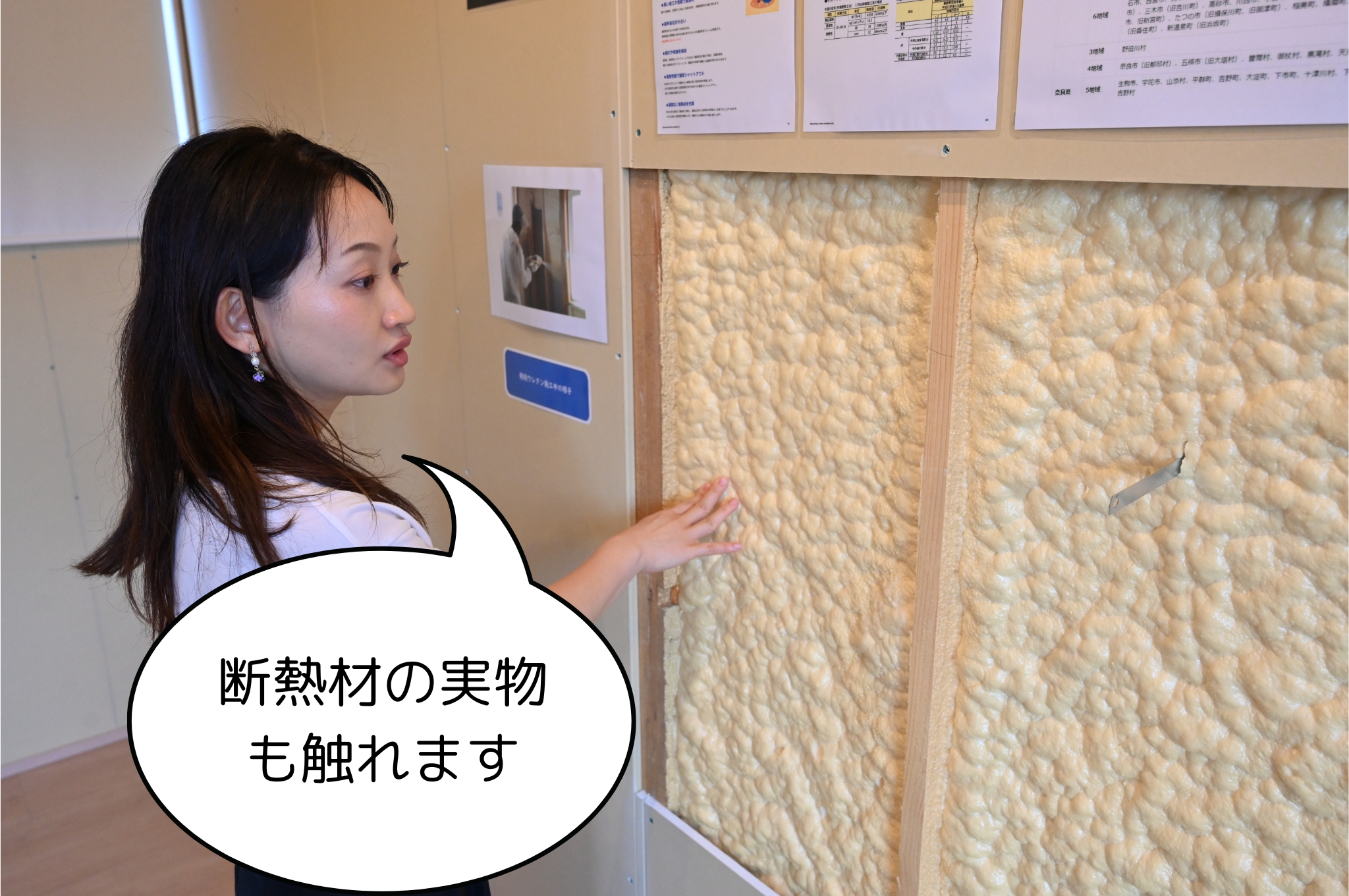 色んなモデルハウスを見てきた編集部ですが、この吹付タイプの断熱材は初めて見ました。