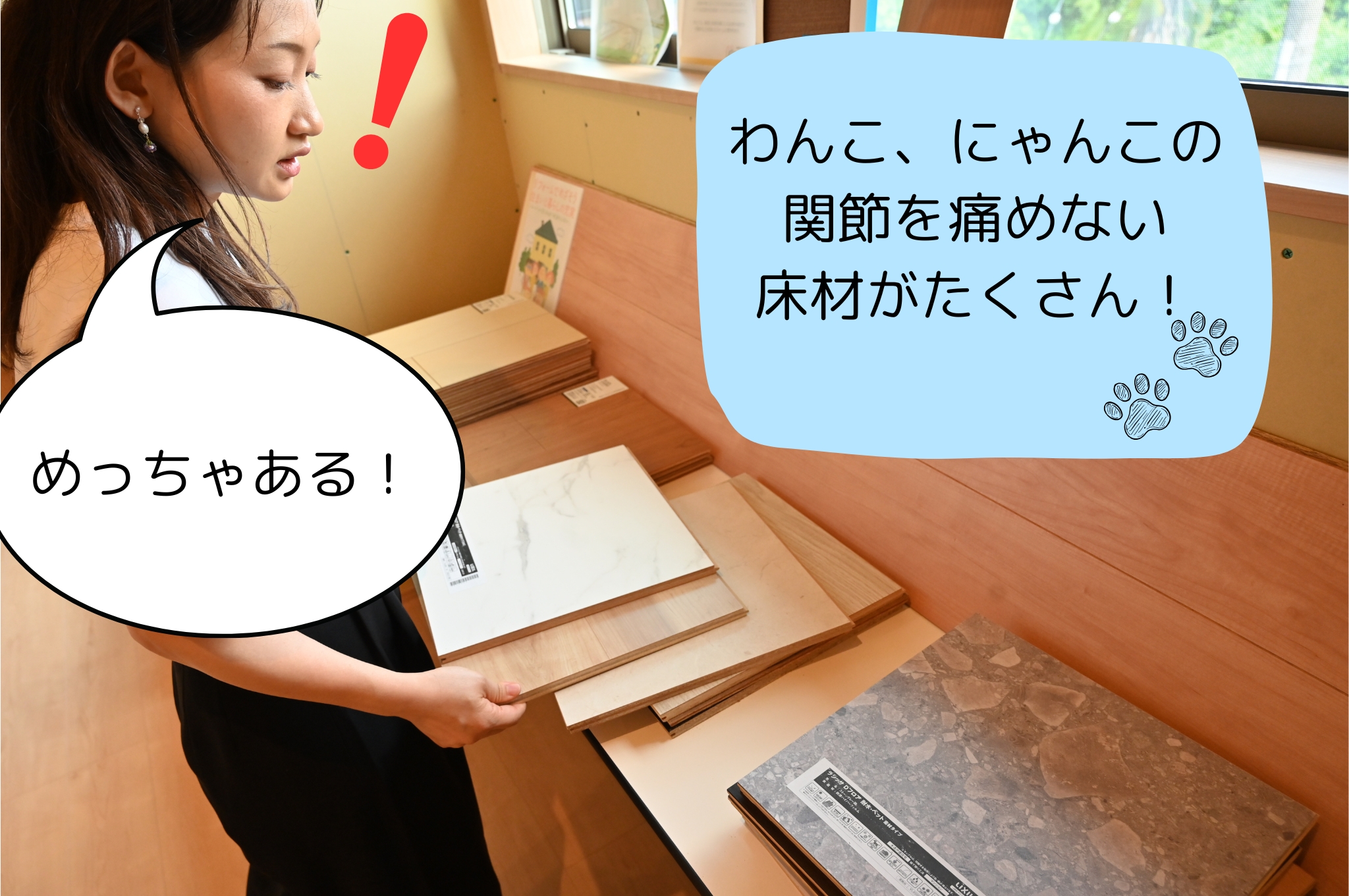 ワンコニャンコのためにお家をリノベーションしたい方には興味深々なのが、犬や猫専用の床材のサンプルも置いてある事。