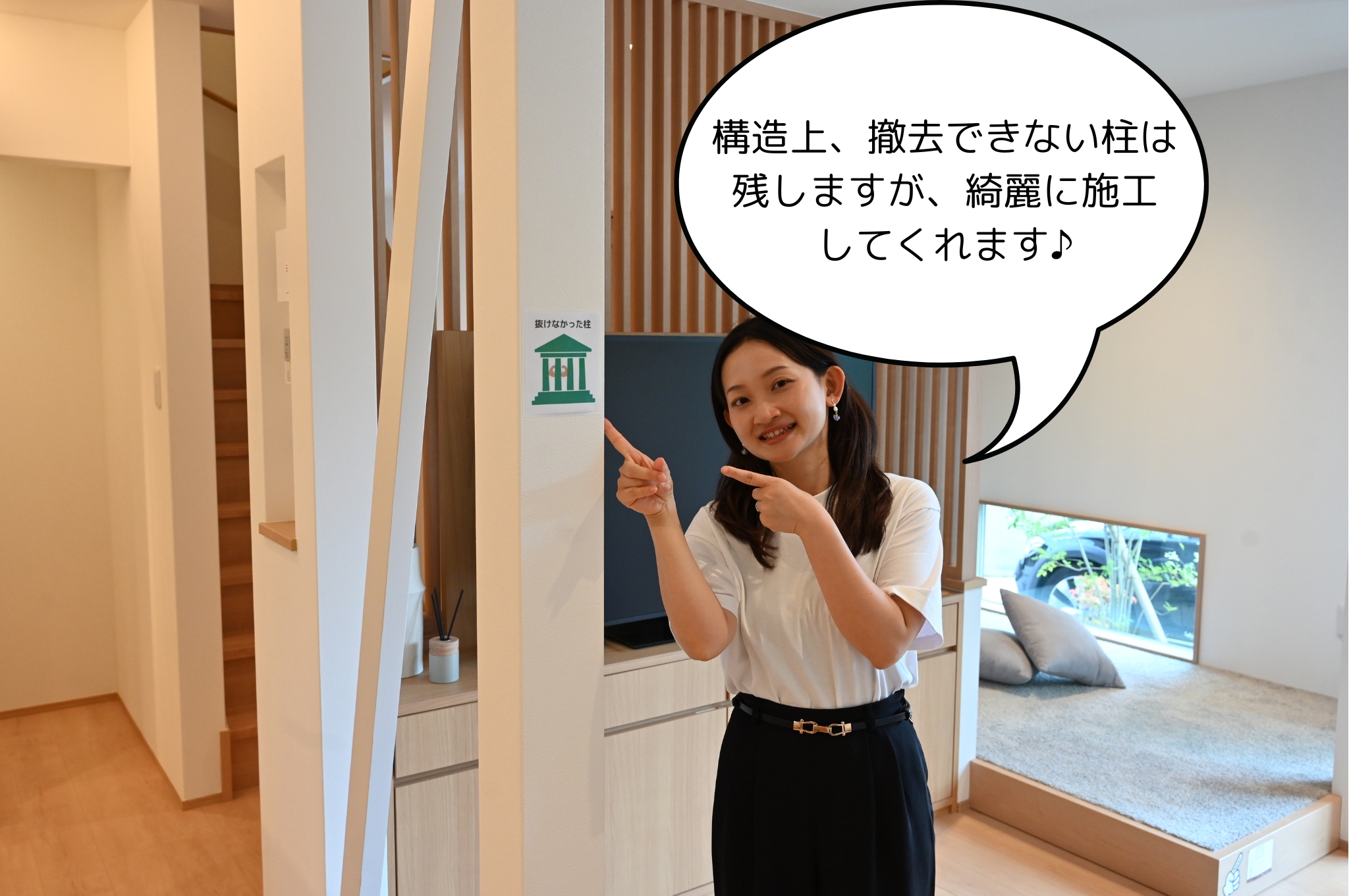 りのべイズムでは、構造上撤去できない柱を残しつつ、新たな補強をしたりして、あなたの叶えたい暮らしを実現してくれます。