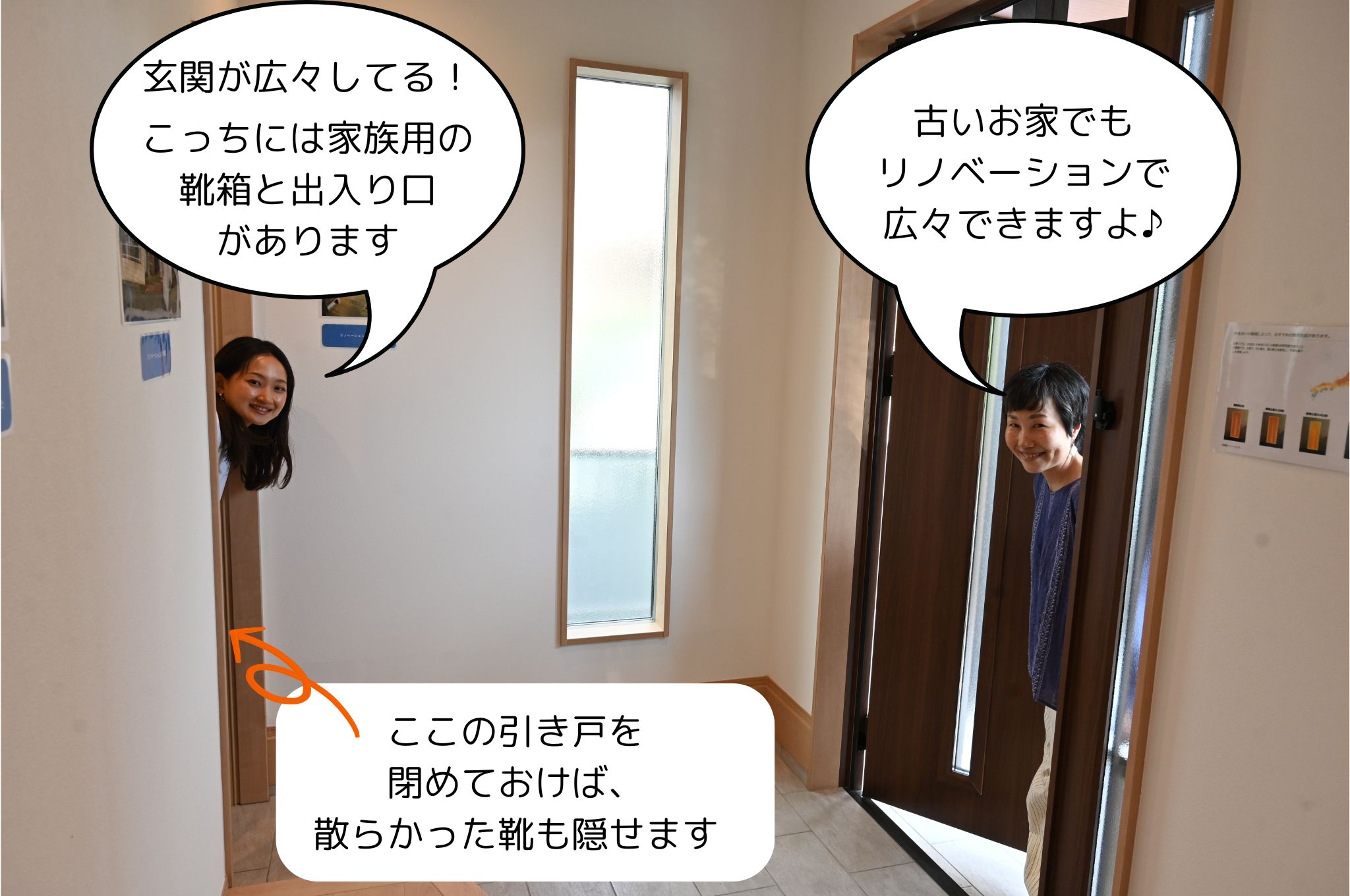 入ってすぐにシューズボックスがあって、家族だけの入口を確保。