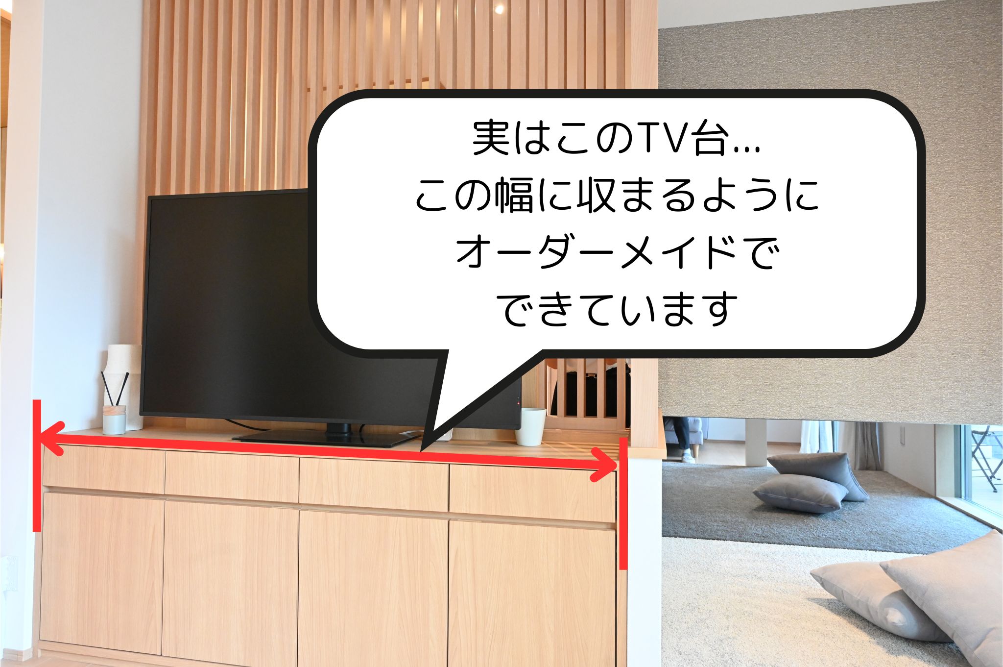 例えば家具を既製品で埋める事もあれば、モデルハウスのTV台のようにオーダーメイドで一から作る事もできます。