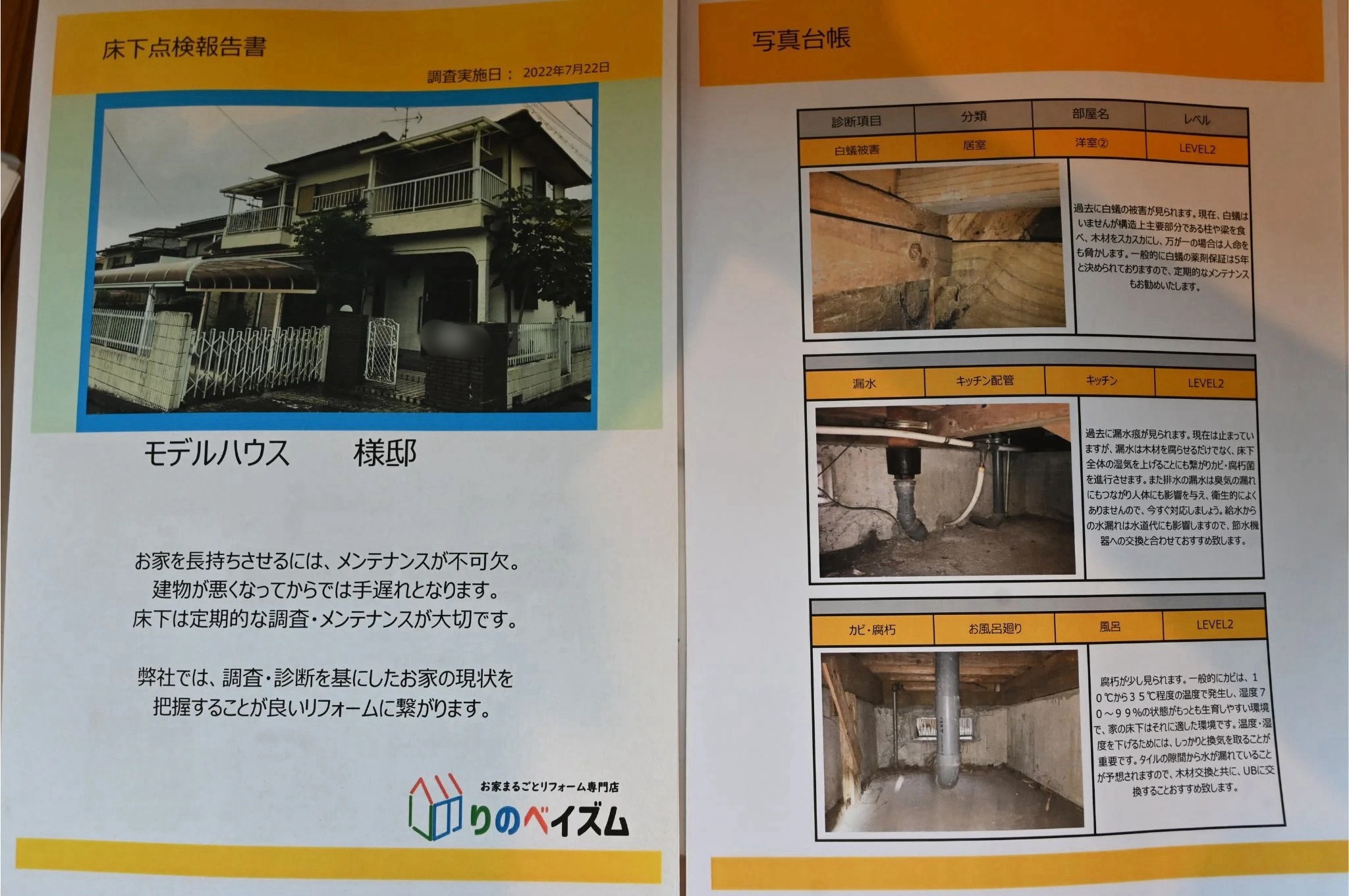 そしてこちらはフルリノベーションを検討中のお宅の現地調査(床下、屋根裏などの状態)報告書。