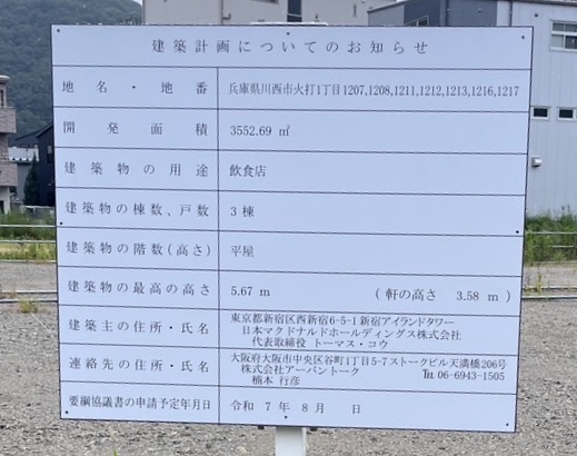 川西市火打の川西警察の前にマクドナルドができるようです!