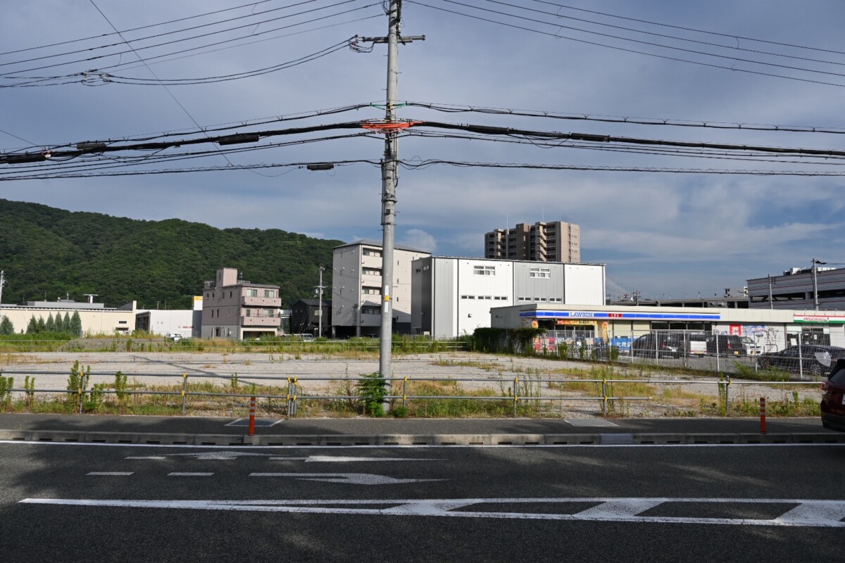この敷地は長らく空き地だったんですが、情報を聞きつけて現場に来た時はまだ何も看板は設置されていませんでした。