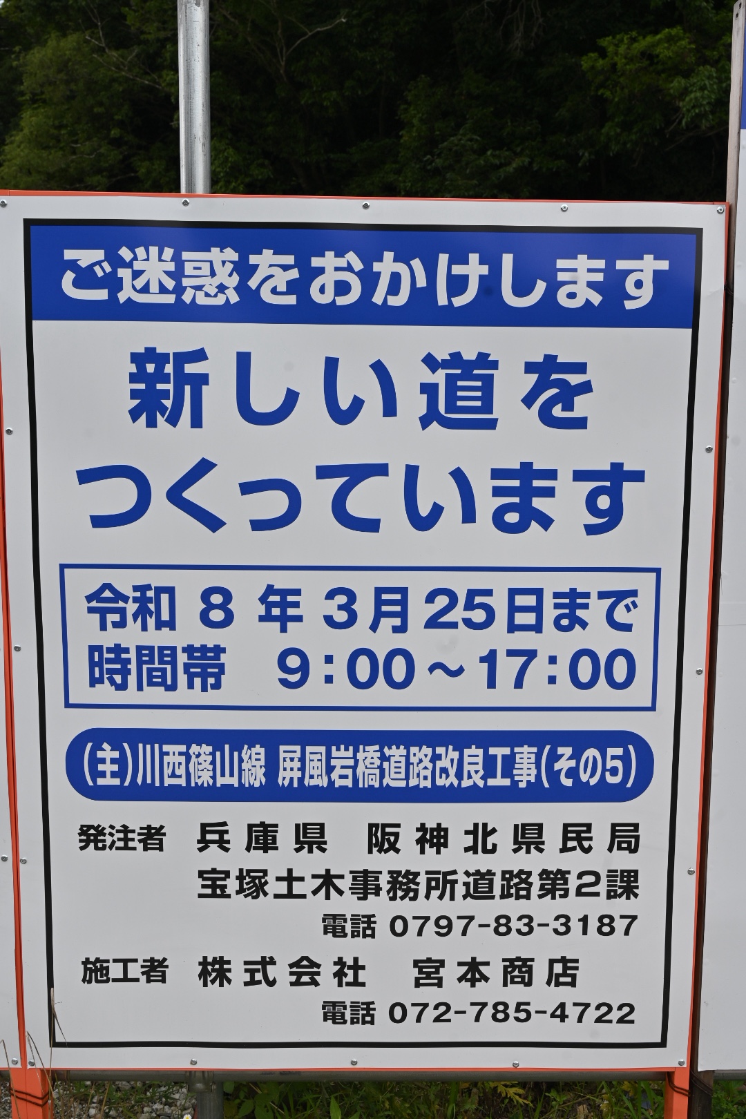 猪名川町の屏風岩前の道路の工事は2026年3月25日までかかるみたいです。