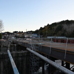 元の橋と新しい橋を見比べると、新しい橋の方が高い位置にありますね。