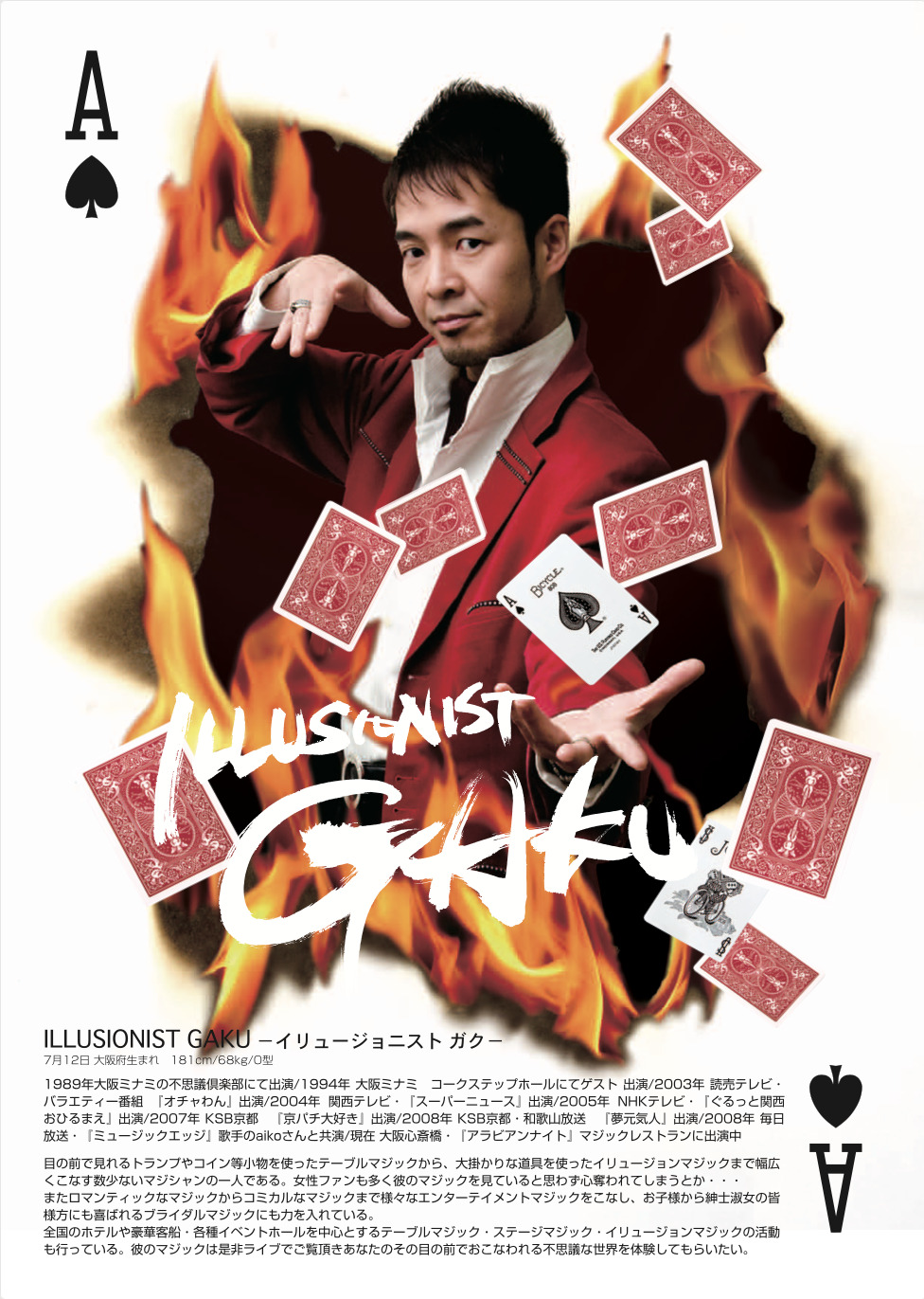 イリュージョニストGAKUは大阪を中心に活躍するマジシャン。