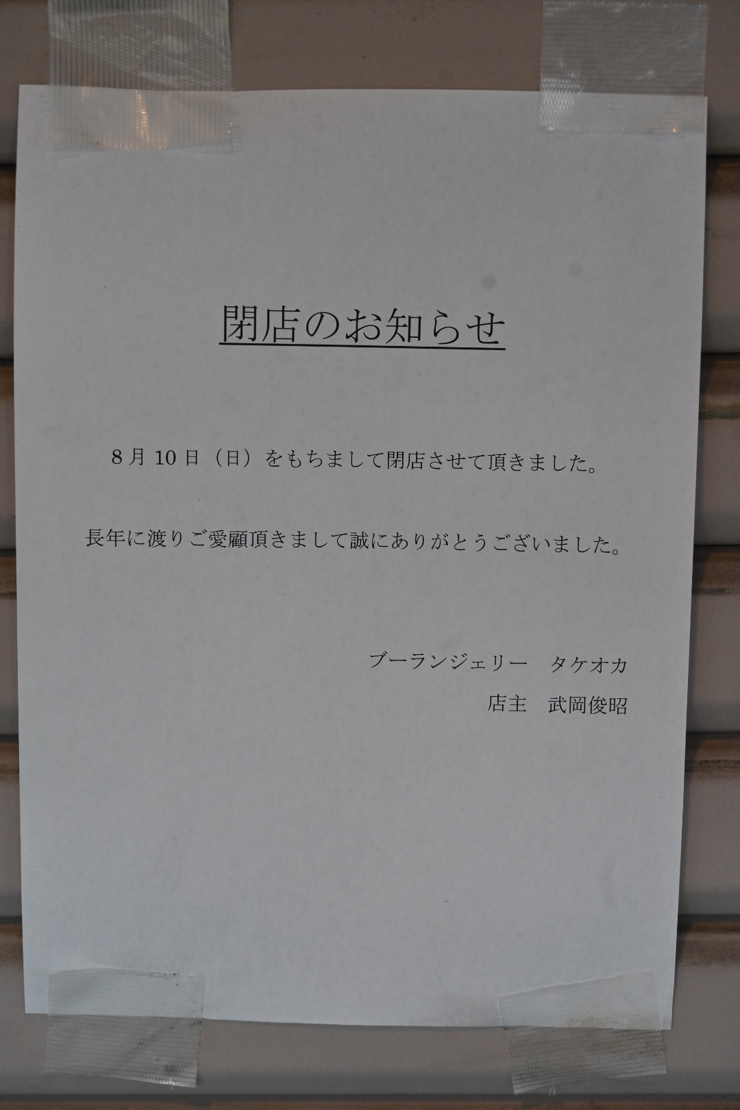 店頭には、8月10日で閉店を告げるお知らせが貼ってあります。