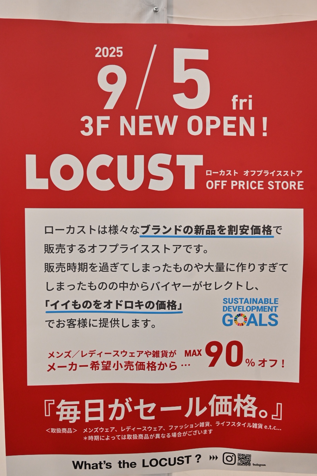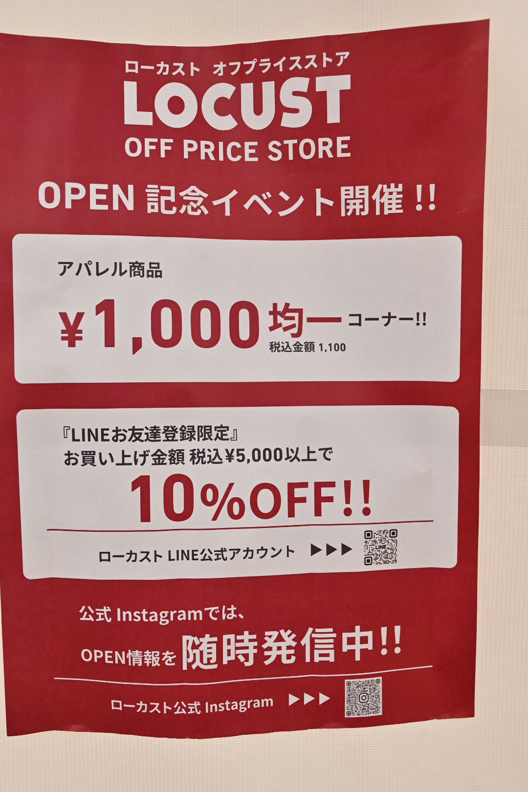 店頭には9月5日(金)、ローカスト オフプライスストアがオープンの告知が。