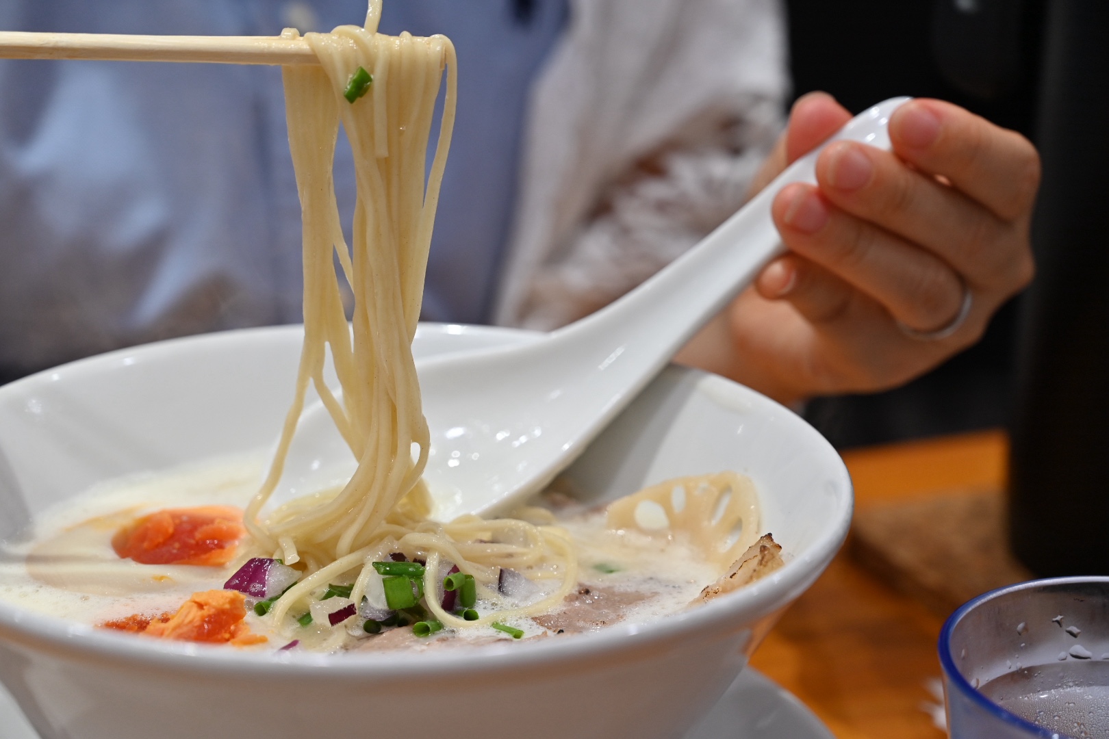 そして、細めのストレート麺がよくスープに絡み、レンコンや鶏のせせりがスープをよく吸ってこれまた美味い。