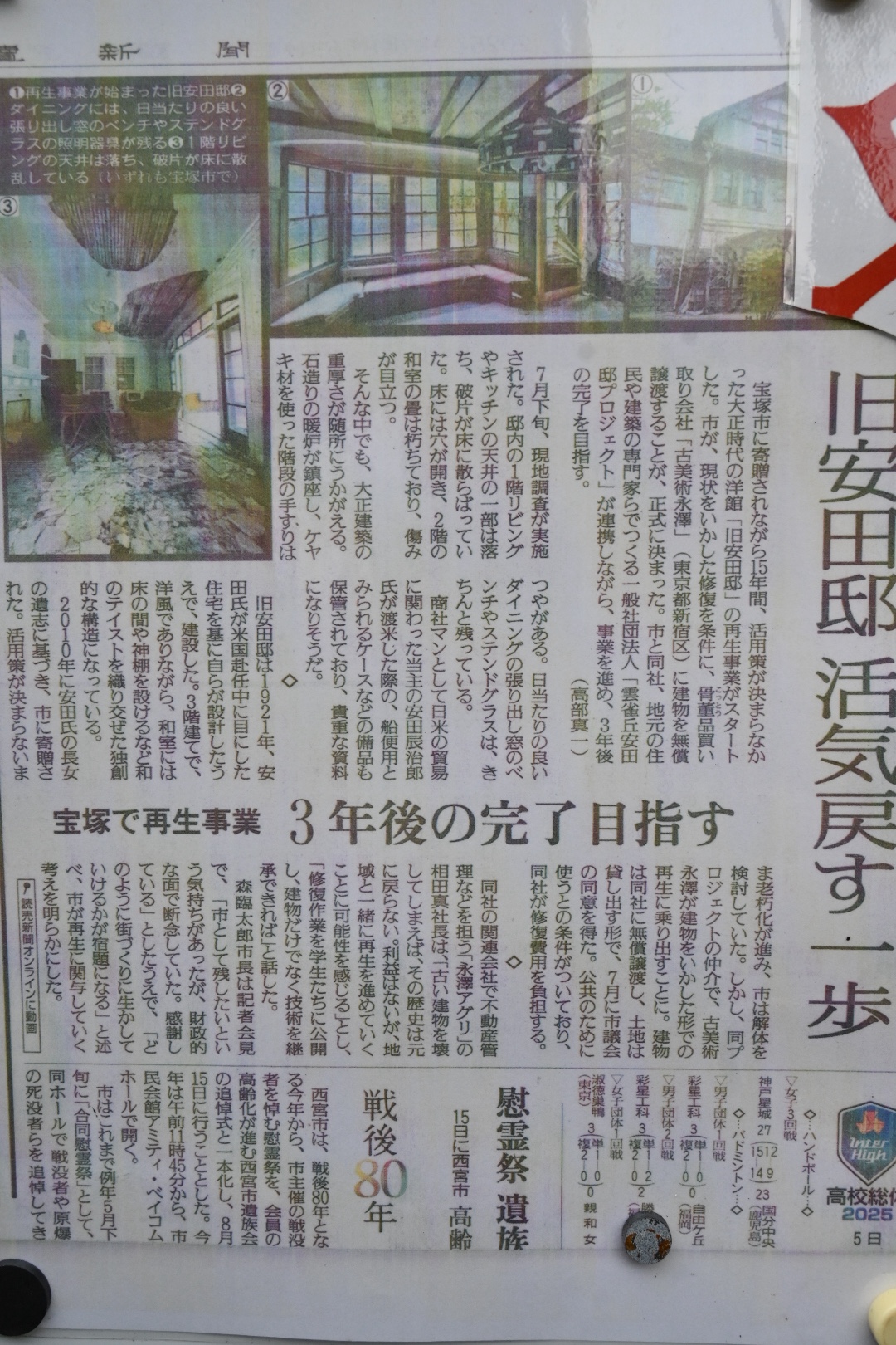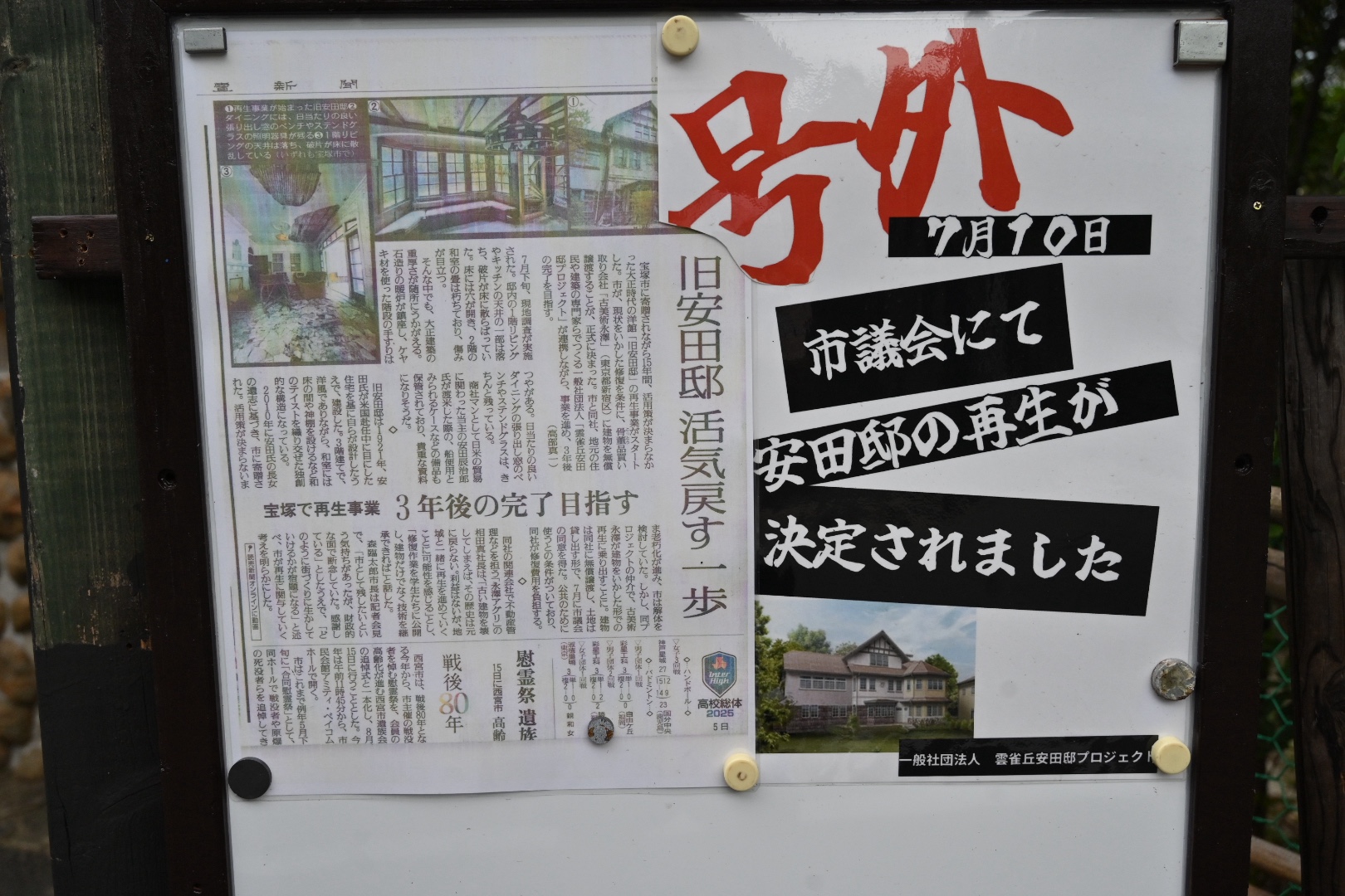 雲雀丘花屋敷駅北にある旧安田邸が3年後の完成を目指して修復されるみたい。