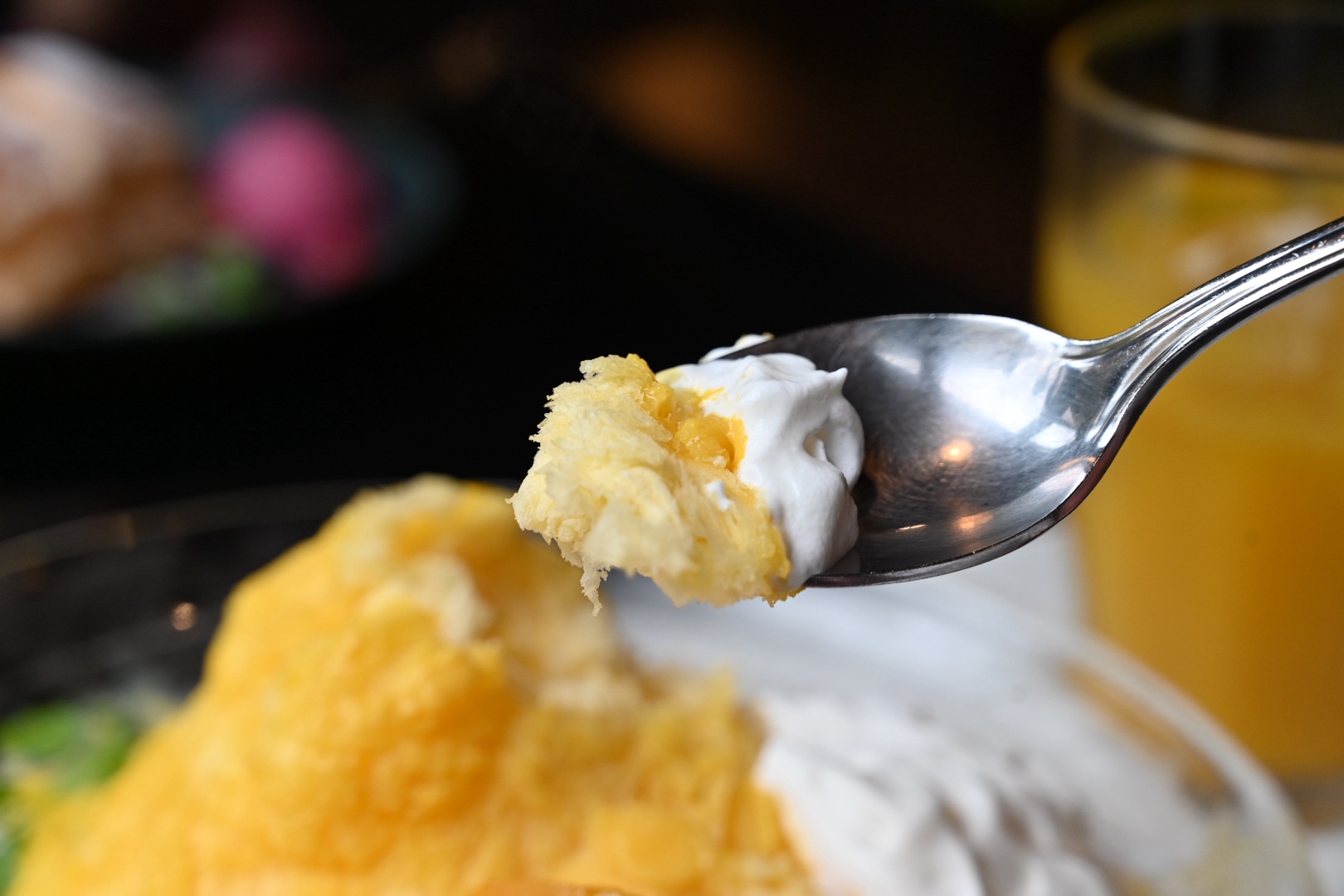 クリームや冷凍マンゴーと一緒に食べても重くない。