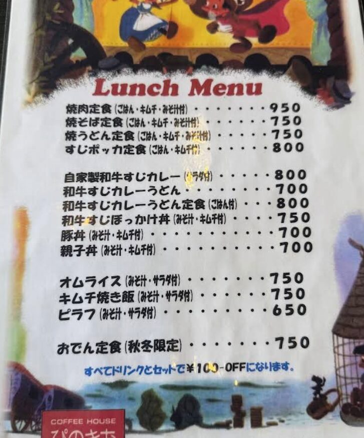 ランチメニューはご覧の安さで「しかもうまい」と評判でした。