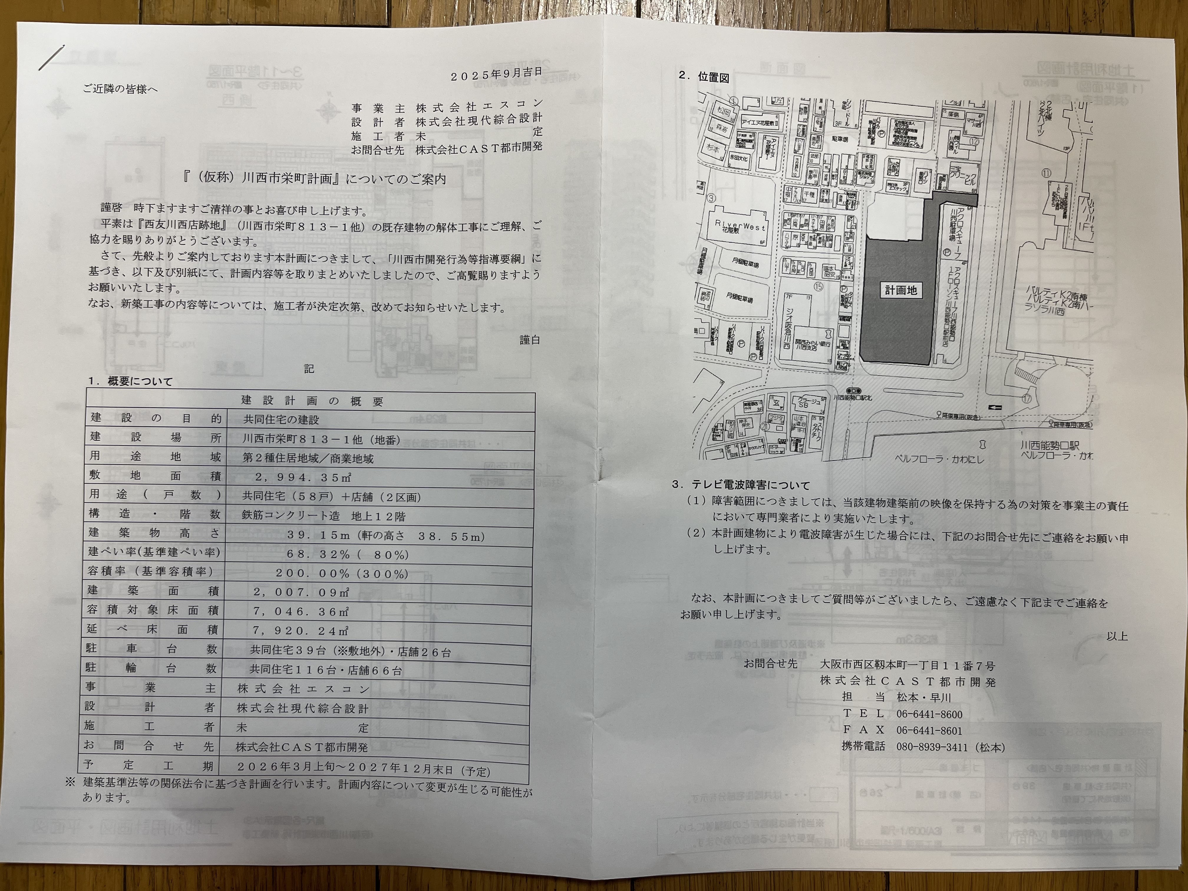 で、気になる跡地の情報ですが、近隣にお住まいの読者からこんな資料を提供していただきました⬇︎