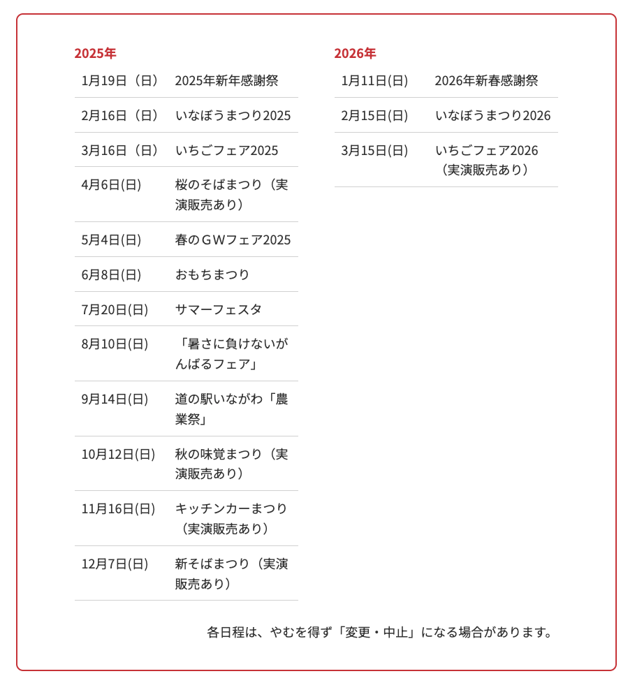 道の駅いながわの公式サイトには、年間のイベントスケジュールが載っているんですが、詳細情報をWEBで発見できませんでした(汗)