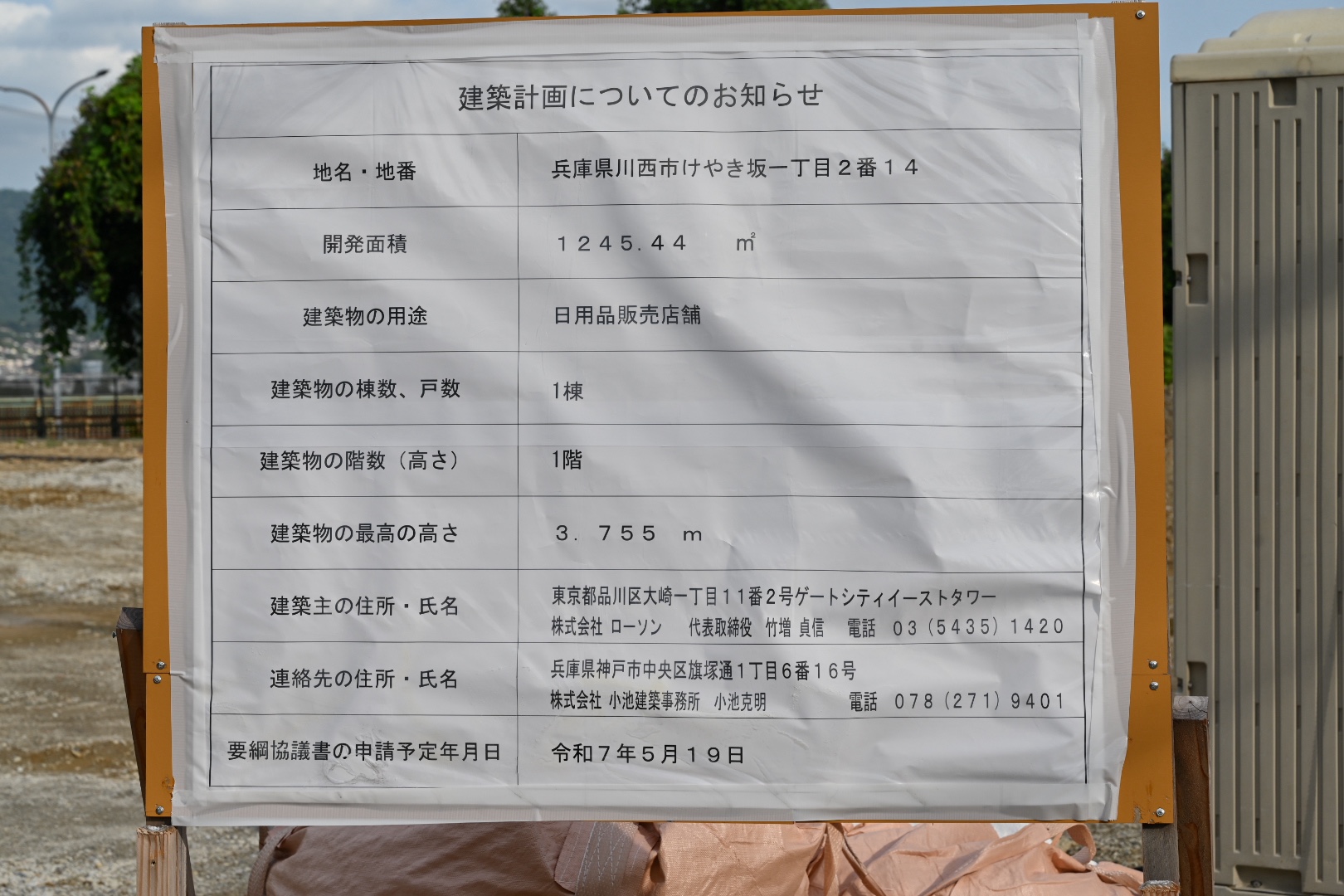 川西市けやき坂のサンマルク跡地のローソンの工事が始まっています。