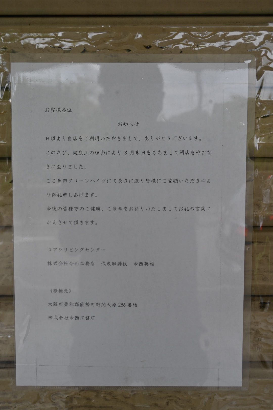 9月18日、店頭に来てみると、閉店の告知が貼ってありました。