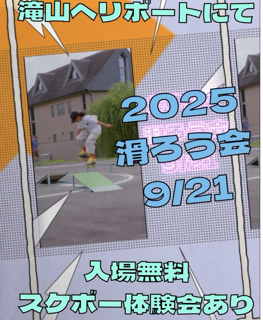 9/21(日)、滝山ヘリポートでスケボーの9月・滑ろう会&体験会が開催されるようです!