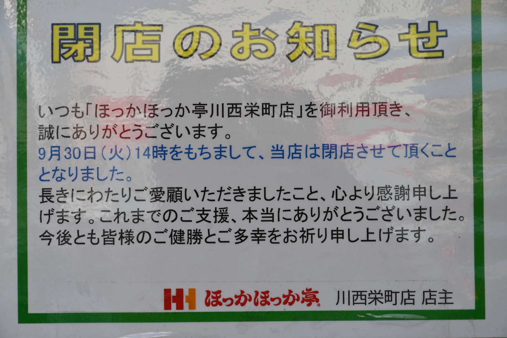 川西市栄町のほっかほっか亭川西栄町店が9/30(火)で閉店するようです。