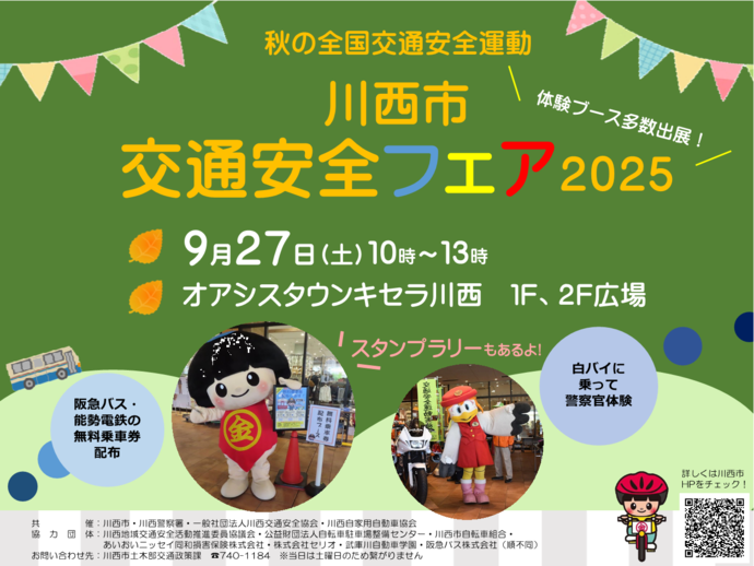 9/27(土)、オアシスタウンキセラ川西で川西市交通安全フェア2025が開催されるみたい。