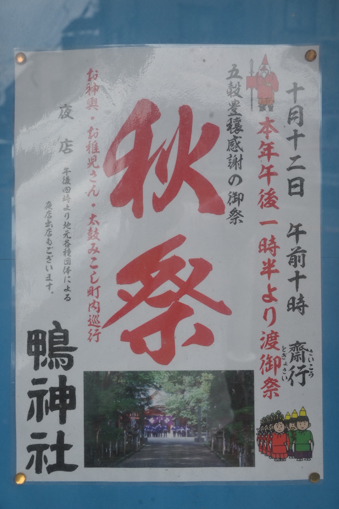 10/12(日)、川西市加茂の鴨神社で秋祭りが開催されるみたい。