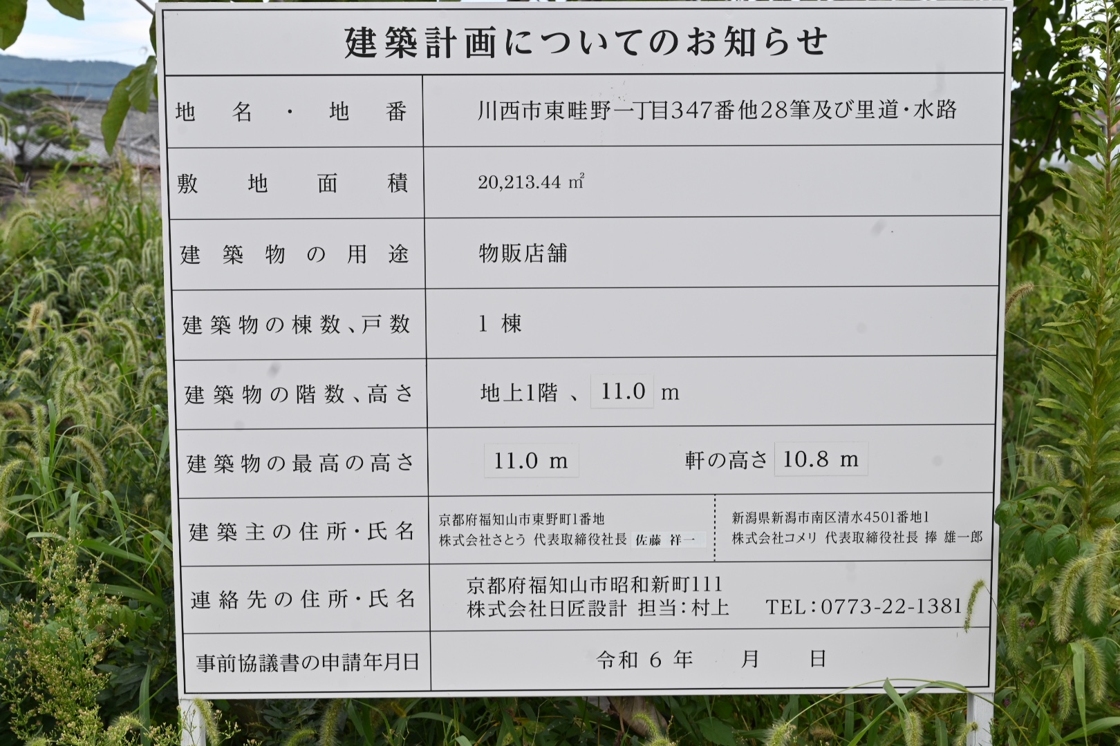 川西市東畦野にできる予定のスーパーさとうとコメリのオープンが2026年3月頃になったようです!