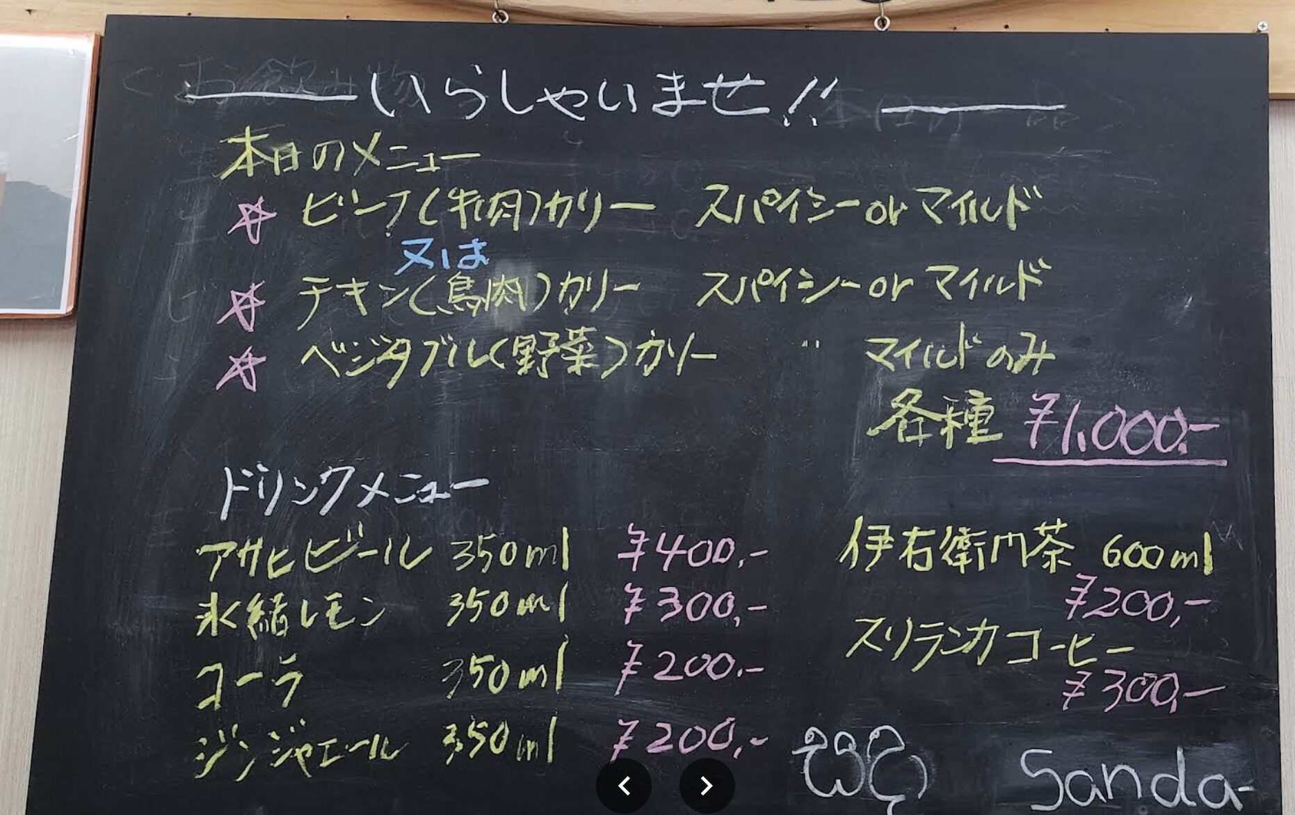 メニューはこんな感じで、スリランカというとヒンドゥー教だからビーフカレーはNGなのでは?と思ったら、かの国は仏教が主でした。