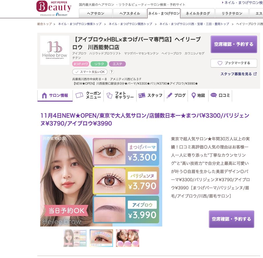 11/4、川西市中央町にHeilee Browっていう美容室がオープンするみたい。