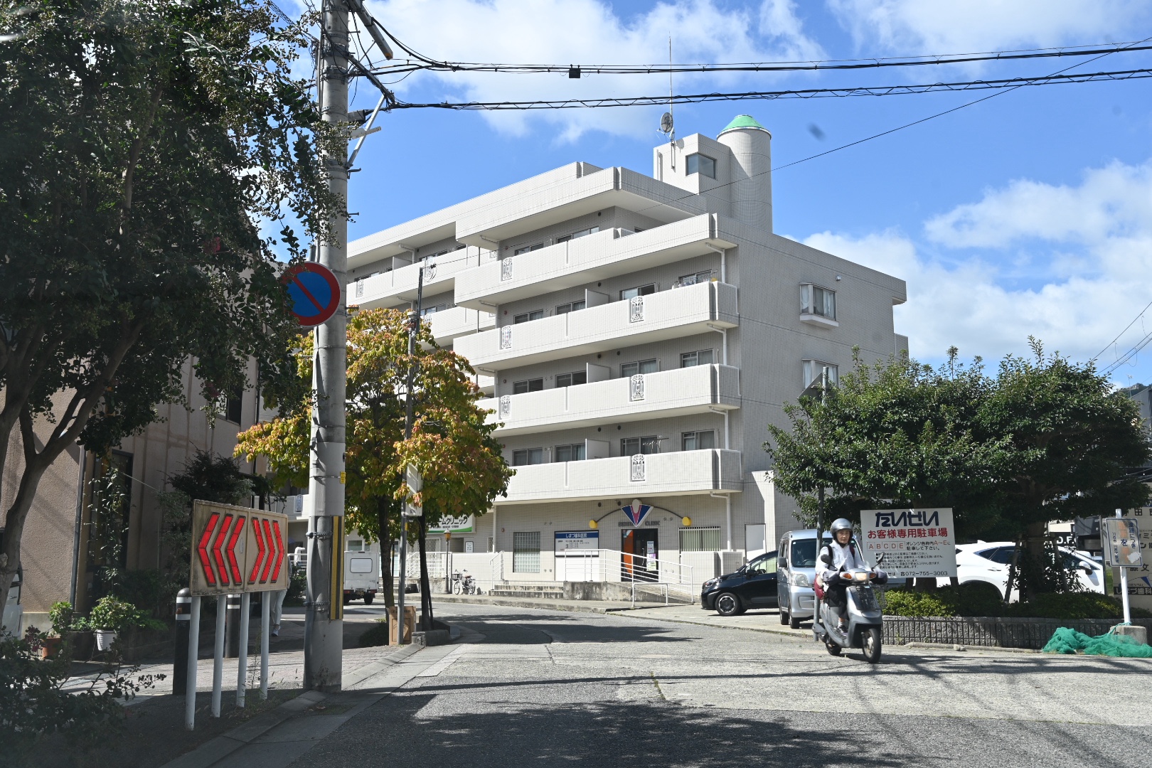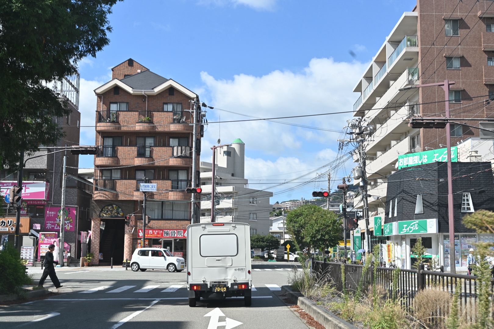 旧西友川西店の前を西に向かいます。