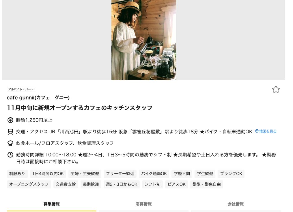 タウンワークには新しいお店の求人情報が出ていて、「cafe gunnii(カフェグニー)」という名前になるようです。