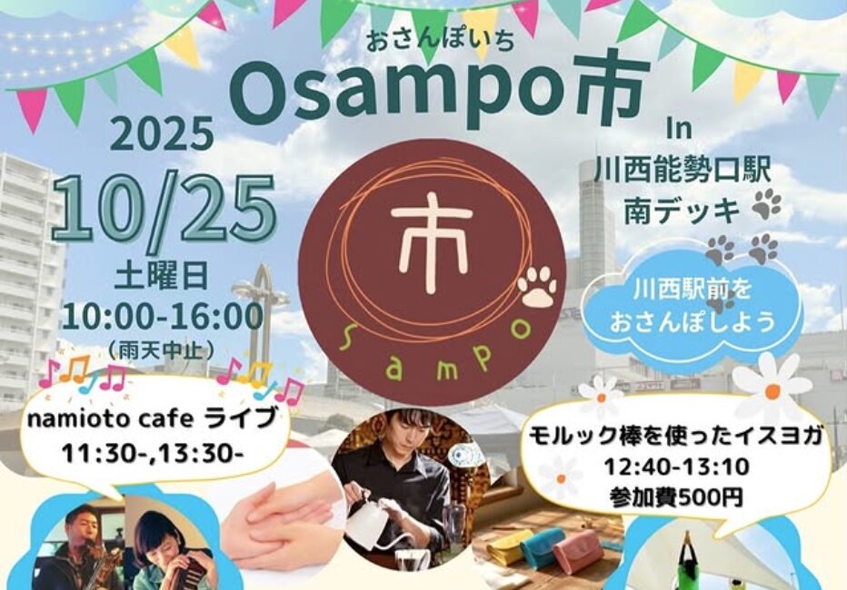 10/25(土)、川西能勢口駅南デッキでOsampo市が開催されるようです!