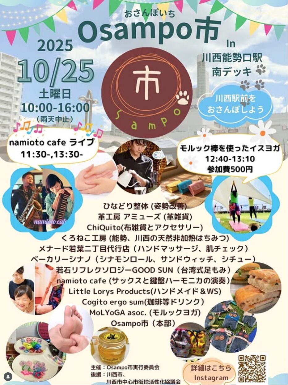 10/25(土)、川西能勢口駅南デッキでOsampo市が開催されるみたい。