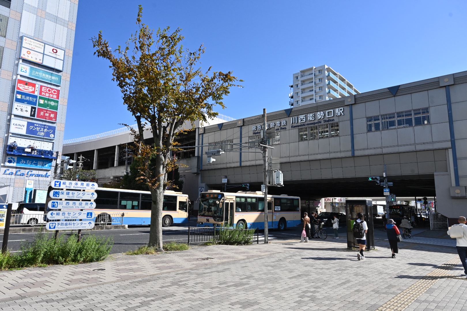川西能勢口駅ですが、道路を渡ってベルフローラ川西イーストへ向かいます。