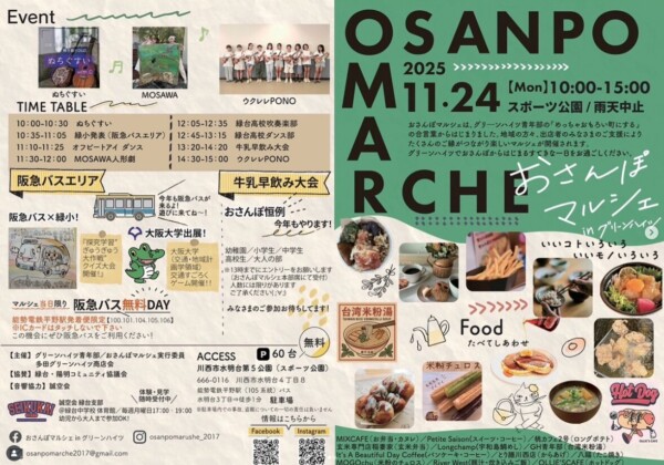 どうも、かわマガ@けいたろうです! イベント情報です! 11/24(月祝)、グリーンハイツのスポーツ公園でおさんぽマルシェが開催...