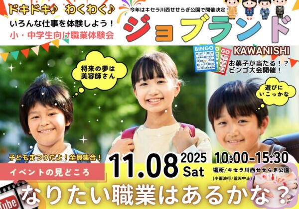 どうも、かわマガ@けいたろうです! 川西市のイベント情報です! 11/8(土)、キセラ川西せせらぎ公園でジョブランド川西が開催さ...