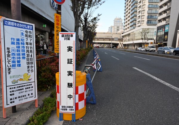 どうも、かわマガ@けいたろうです! 川西市の交通ネタです! アステ川西前の3車線道路の1車線が違法駐車対策で半分くらい制限されて...