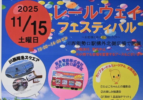 どうも、かわマガ@けいたろうです! 川西市のイベント情報です! 11/15(土)レールウェイフェスティバルin川西能勢口駅 ~お...