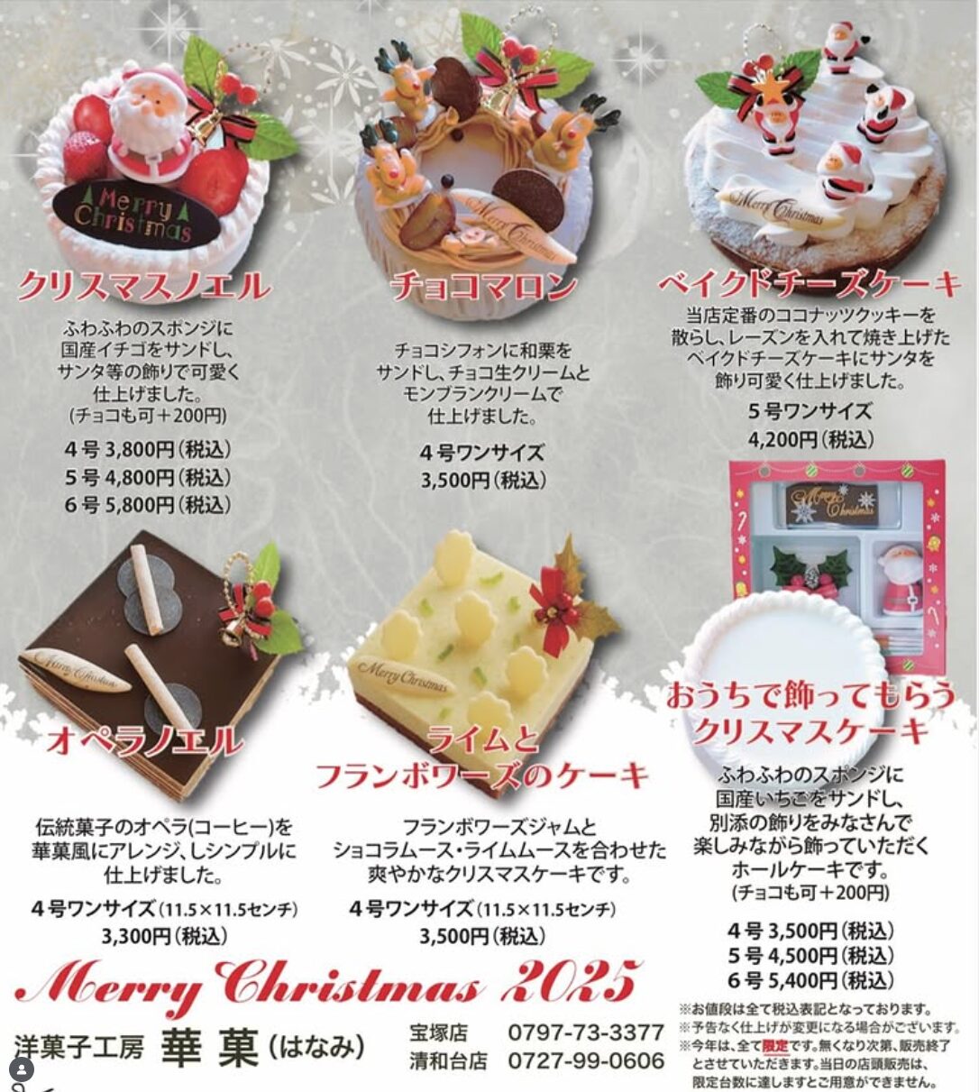 ということで、クリスマスケーキの予約ができる川西市・猪名川町のケーキ屋さんのまとめでした。