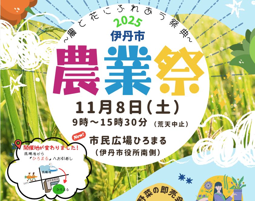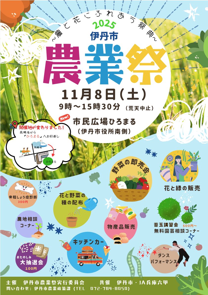 11/8(土)、市民広場ひろまるで2025伊丹市農業祭が開催されるみたい。