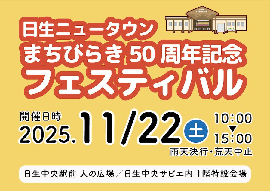 11/22(土)、日生中央サピエで「日生ニュータウンまちびらきフェスティバル」が開催されるようです!
