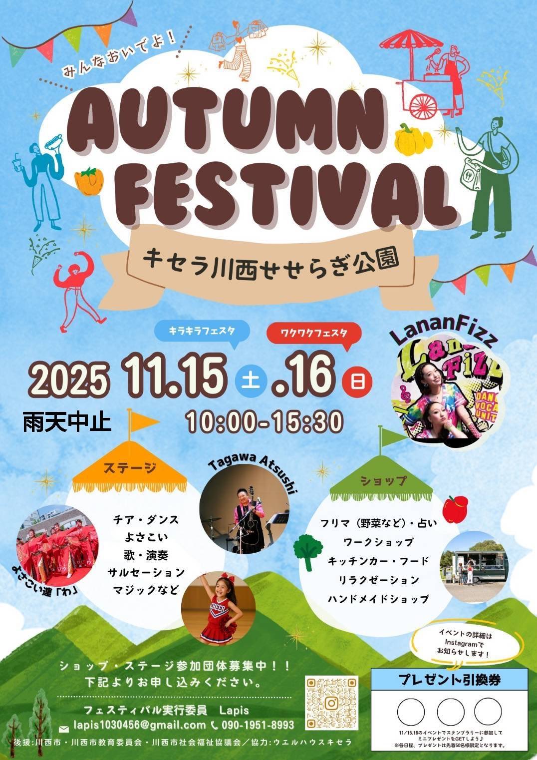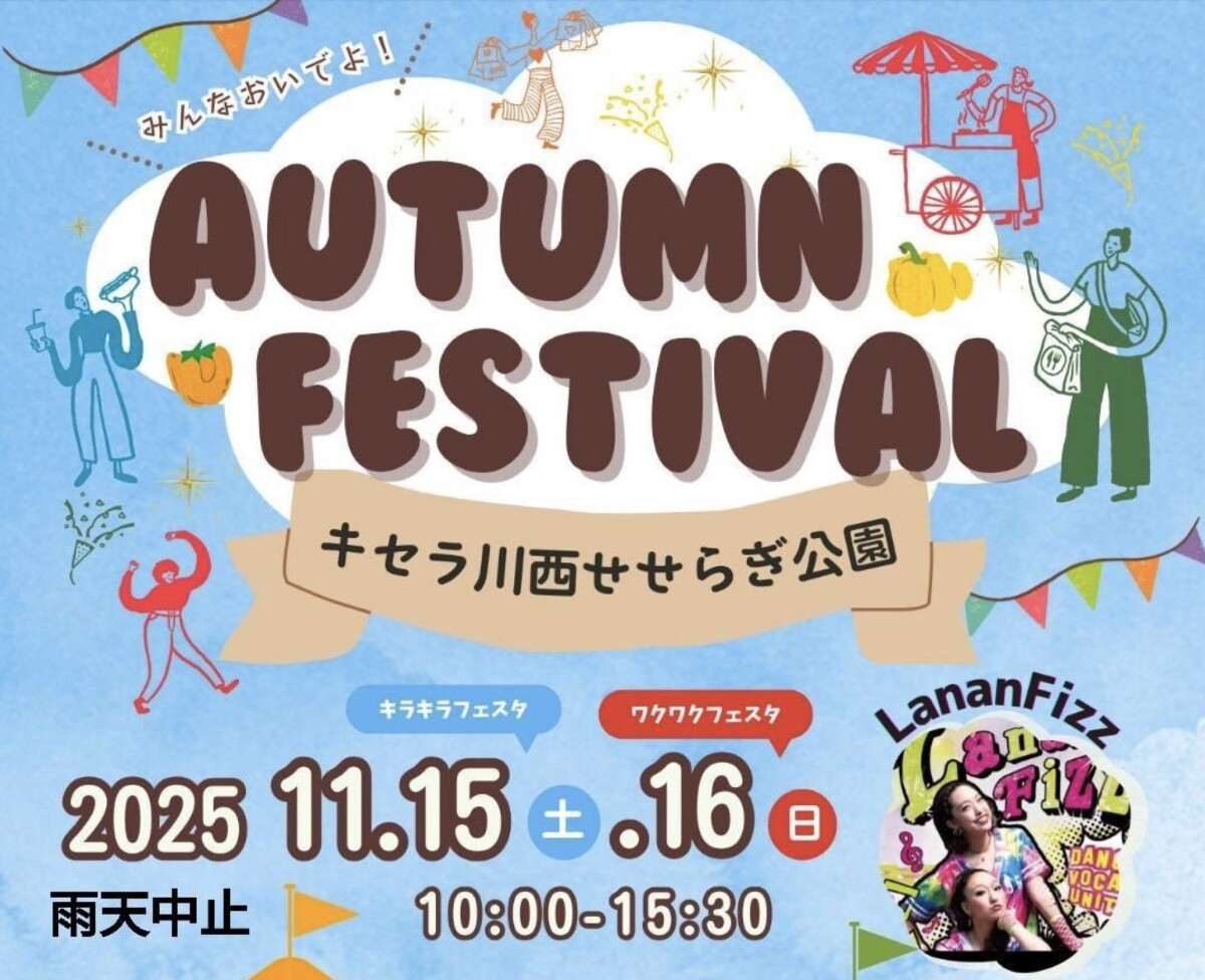 11/15(土)16(日)キセラ川西せせらぎ公園でAUTUMN FESTIVALが開催されるようです!