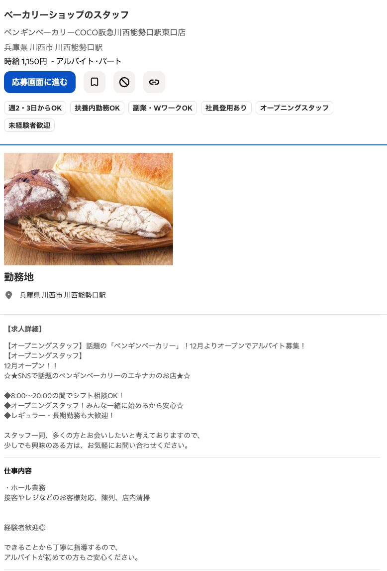 インディードの求人情報によると、お店は12月に川西能勢口駅東口改札横にオープンします。