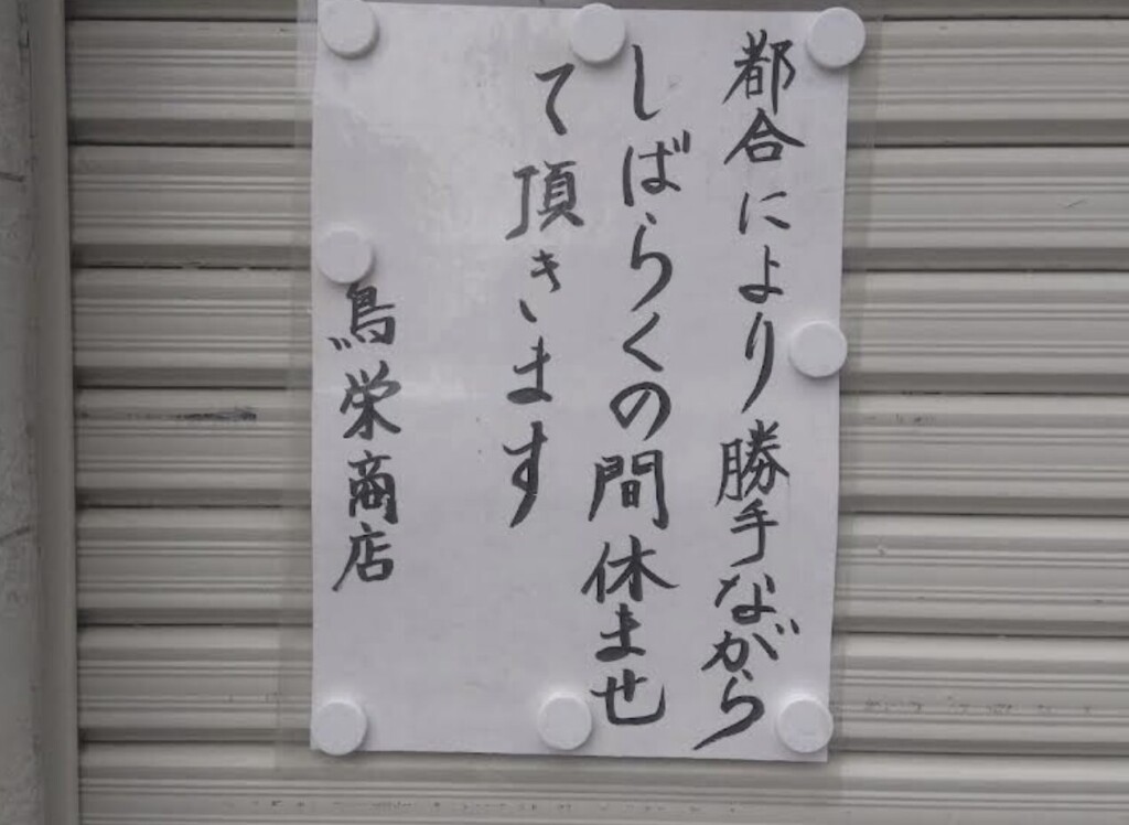 川西市小花にあった鳥栄商店が閉店したみたい。