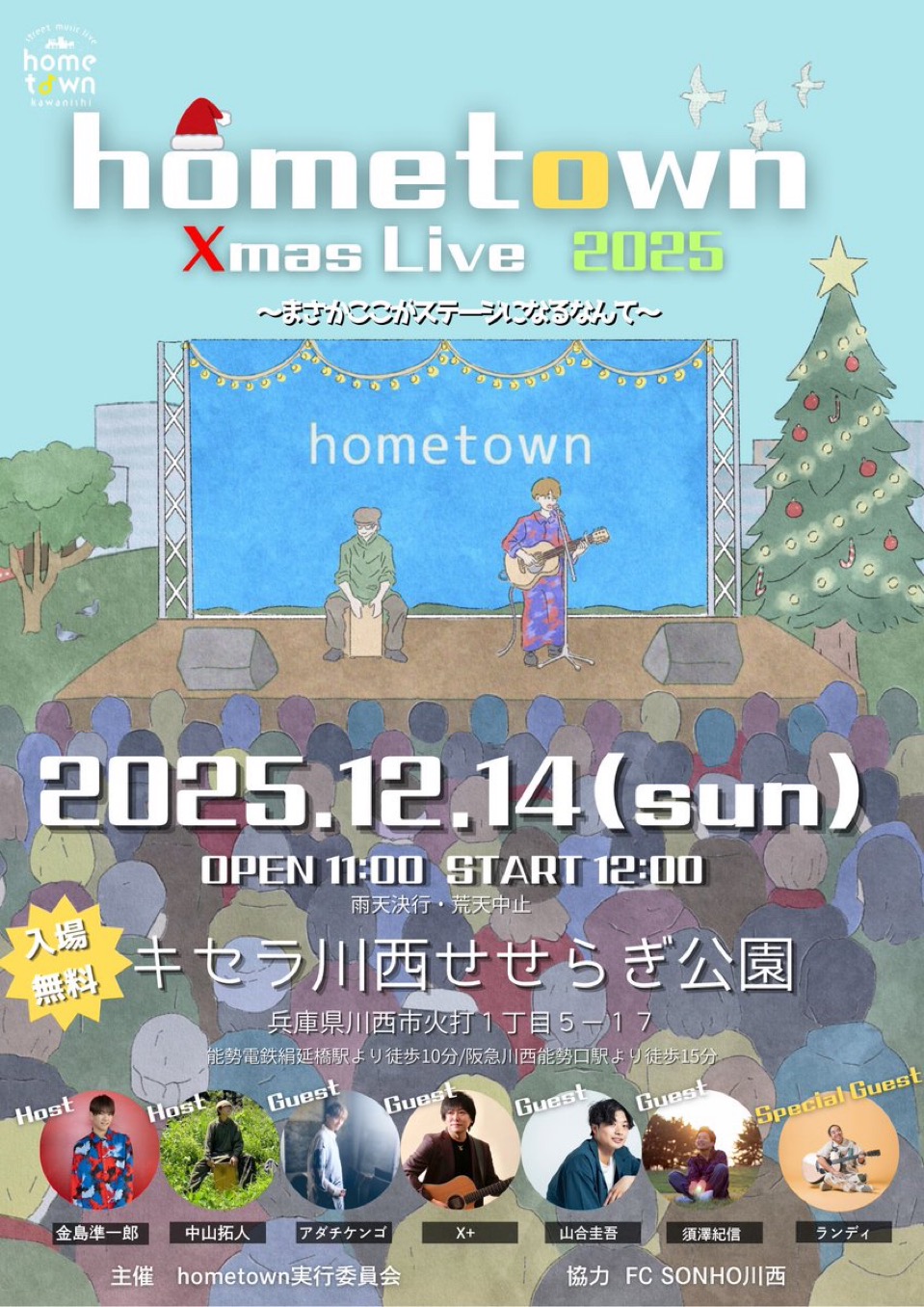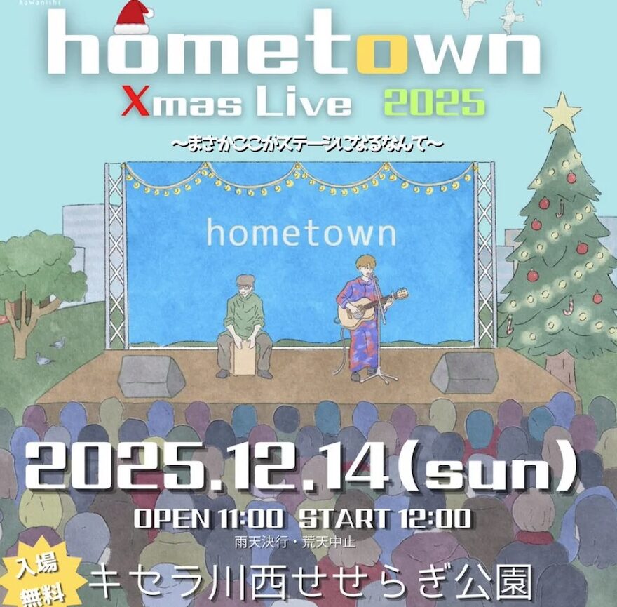 12/14(日)、キセラ川西せせらぎ公園でhometown Xmas live 2025が開催されるようです!