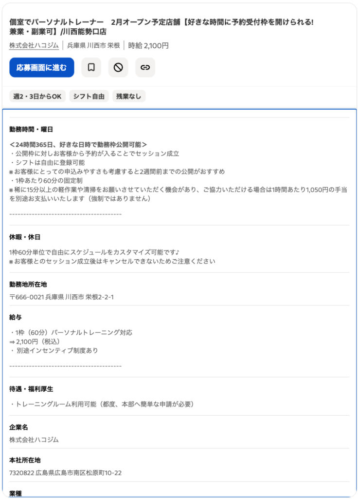 インディードの求人情報によると、ハコジム川西能勢口店というパーソナルジムが2026年2月にオープン予定。