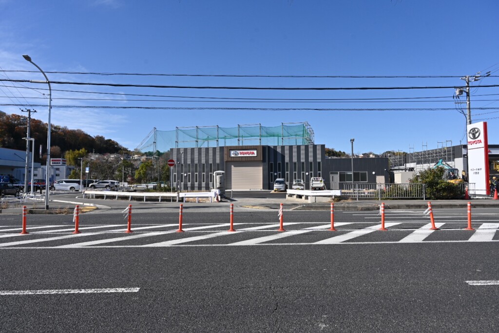 リニューアル工事をしていた多田桜木のトヨタカローラ神戸川西店の工事がそろそろ終わるみたい。